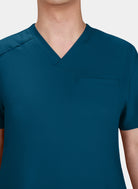 A modern scrub top that balances comfort, style, and functionality for any healthcare environment.
